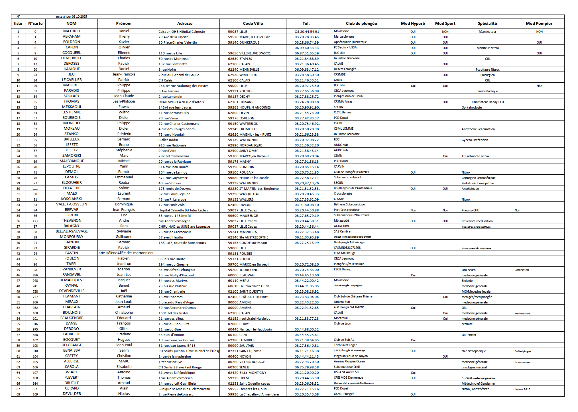 Enfin concernant un accident : Voie logique le directeur de plongée, le SAMU ou le 112 européen et évacuation médicalisée sous O² continu vers les urgences hospitalières les plus proche ou le centre Hyperbare le plus proche.